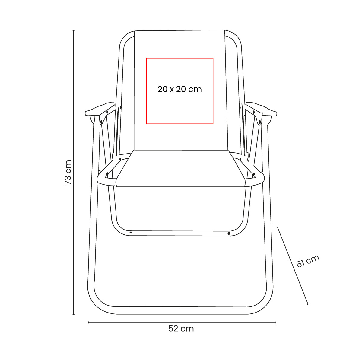 Descripción Silla plegable con descansabrazos. De estructura ligera, fácil de armar y guardar, ocupando poco espacio al estar plegada.