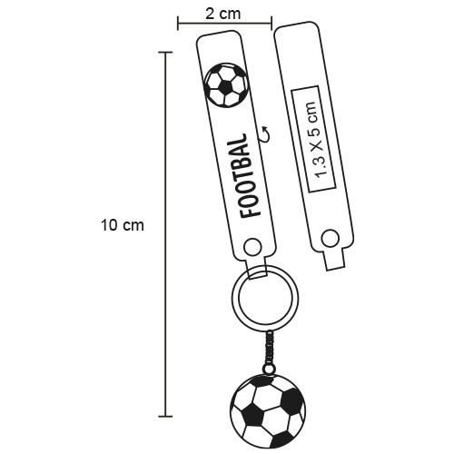 Descripción Llavero con pelota de soccer, aro para llaves y gancho para mejor sujeción.