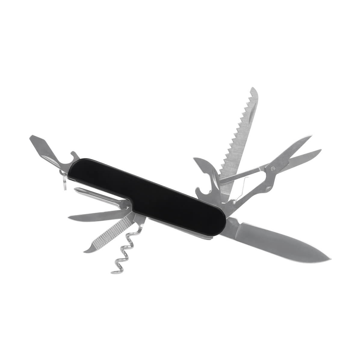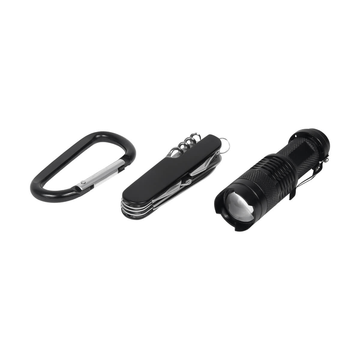 | Descripción | Set de herramientas multiusos. Incluye gancho metálico, lámpara con luz ajustable y navaja con 9 funciones: (navaja, sierra, tijeras, destapador, abrelatas, sacacorchos, guía de hilo, lima y desarmador de cruz). Incluye caja individual. |