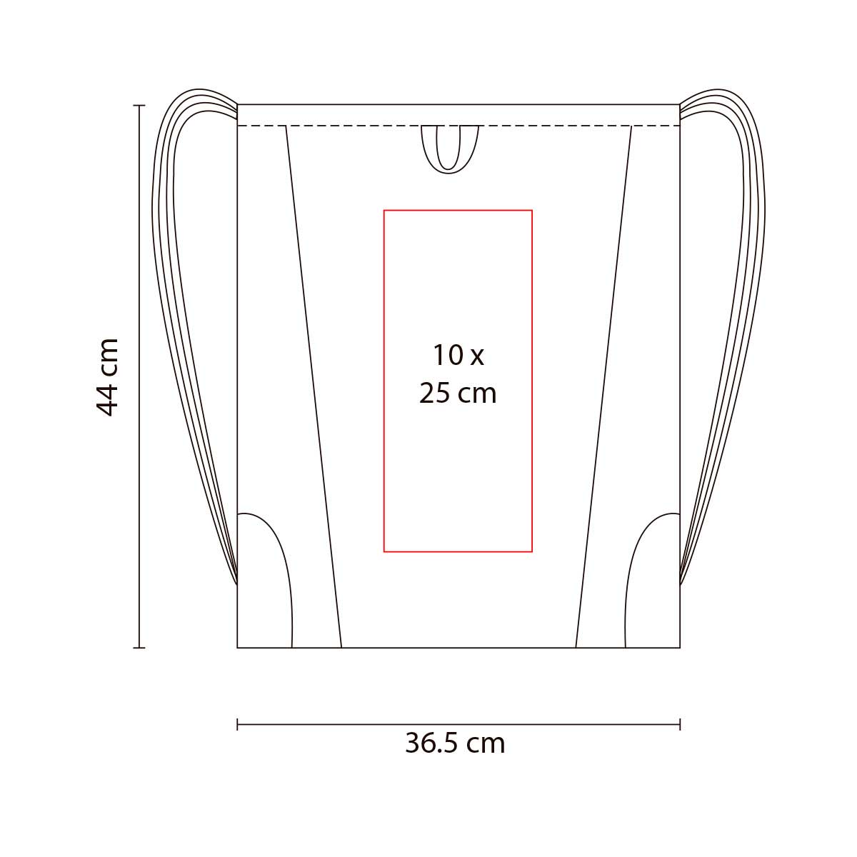 | Descripción | Bolsa-mochila con tirantes de cordón y cerrado con jareta. |