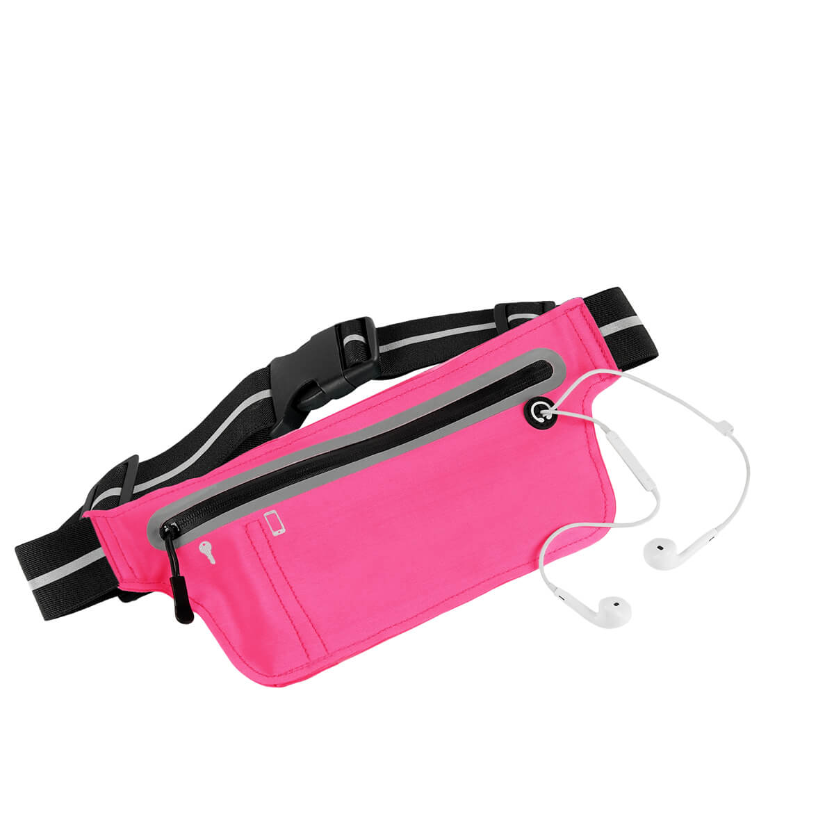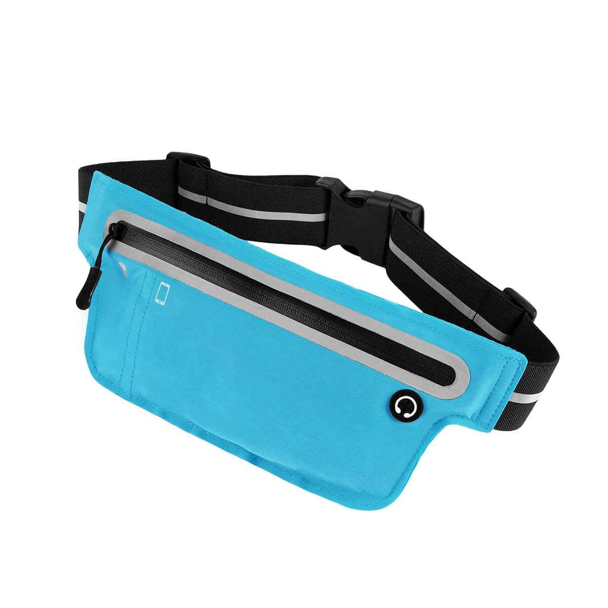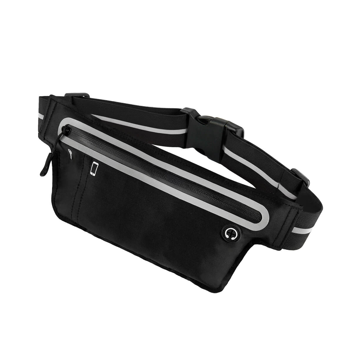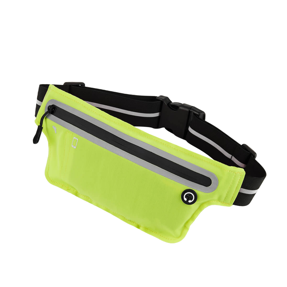 Descripción Cangurera deportiva ligera. Incluye interior plastificado. Ofrece resistencia al agua y comodidad en todo momento. Su compartimento con cierre y puller con correa permite guardar lo esencial, mientras que la salida para audífonos con cable te acompaña con música en cada paso. La banda elástica con broche de plástico se adapta fácilmente al cuerpo, y sus detalles reflejantes en cinturón y cuerpo brindan visibilidad extra en condiciones de poca luz.