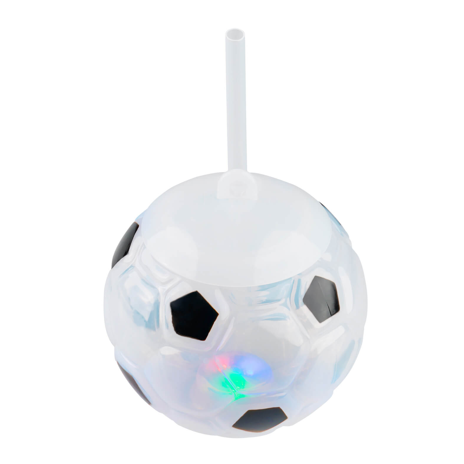 | Descripción | Cilindro de plástico con forma de balón de soccer, listón, popote y luz de 3 colores. |