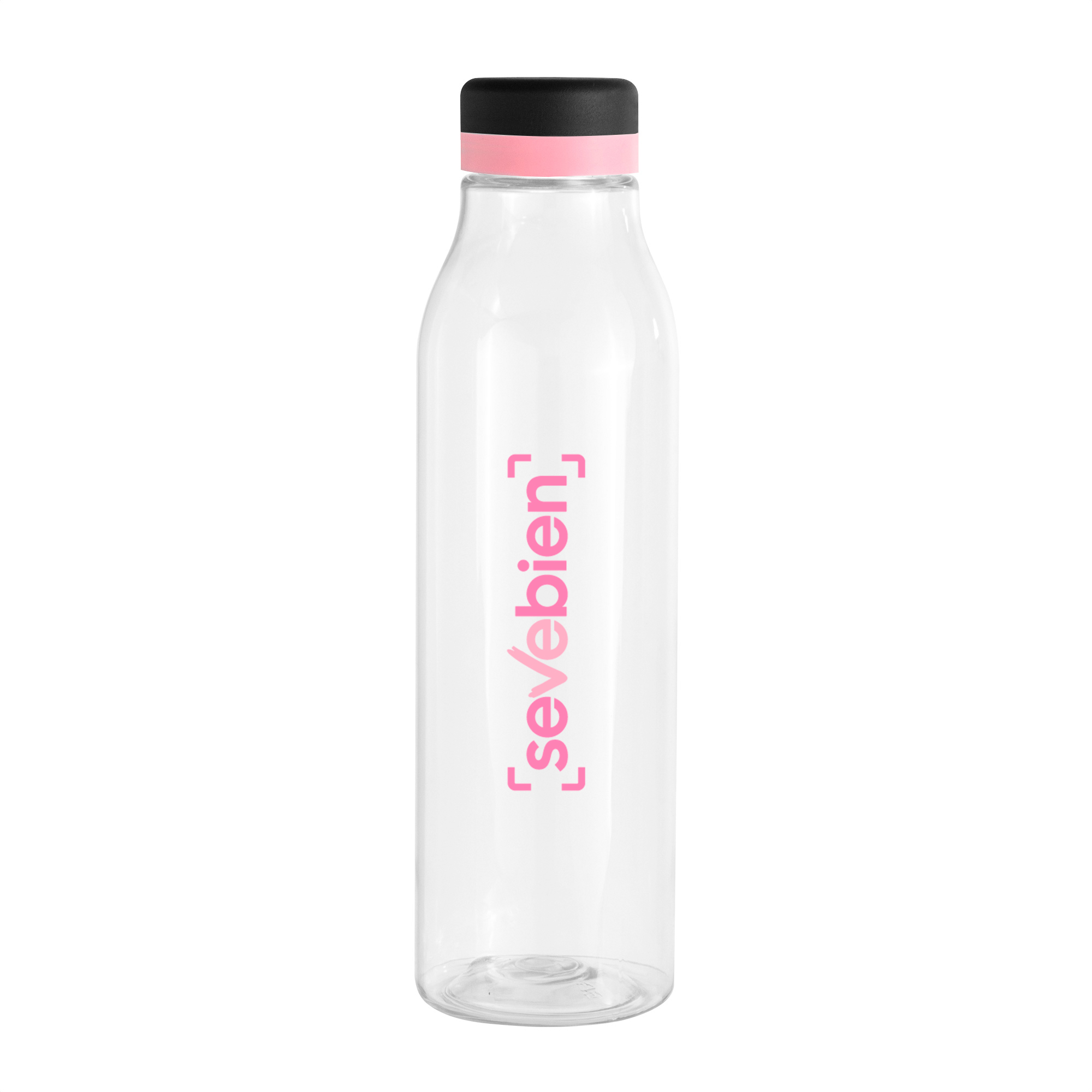 | Descripción | ¡Tu botella, a tu manera!Botella de plástico transparente con tapa a rosca color negro mate con anillo de silicona de diferentes colores.Medidas: Ø 7 x 24,5 cm. Capacidad: 750 ml. Peso: 70 g. (botella) y 15g. (tapa) Materiales: PET Cristalino. ATENCIÓN Botella, tapa y anillo de silicona se entregan por separado. / No utilizar con bebidas gaseosas ni líquidos calientes. / El manejo de este producto es delicado. / No exponer al sol y temperaturas altas por tiempo prolongado. |