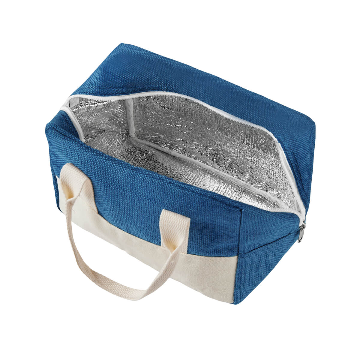 | Descripción | Lonchera con interior metalizado. Compartimento principal con cierre. Práctica, ligera y con un toque natural, esta lonchera es ideal para el día a día, ya que combina poliéster con detalles en algodón ecológico, una alternativa funcional con conciencia ambiental. Capacidad 6 latas. |